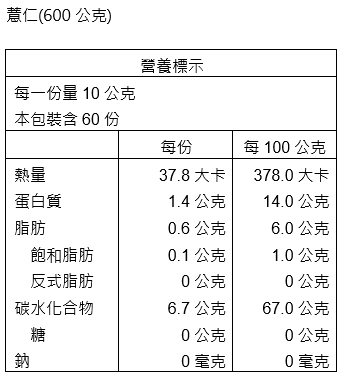 成分:薏仁